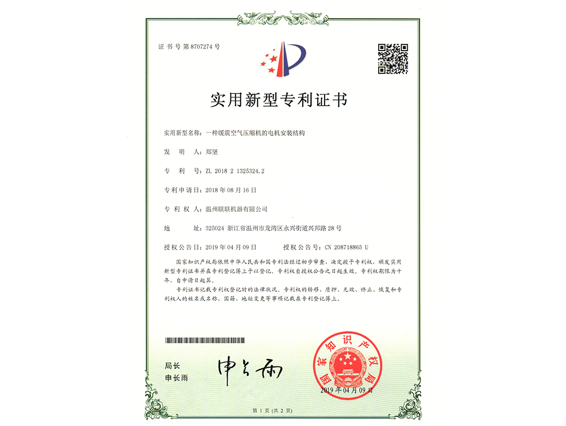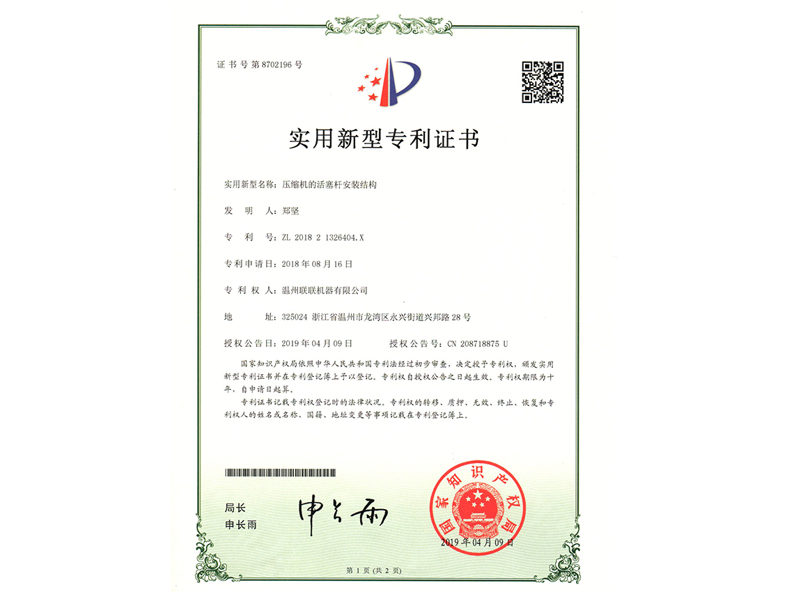 联联专利证书